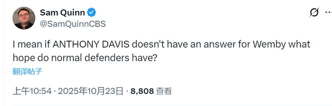 盡管濃眉哥是拿過冠軍的全能內(nèi)線球員,但是在天賦更出眾的文班亞馬面前,他也無可奈何。文班亞馬這一戰(zhàn)上演了6次精彩暴扣。